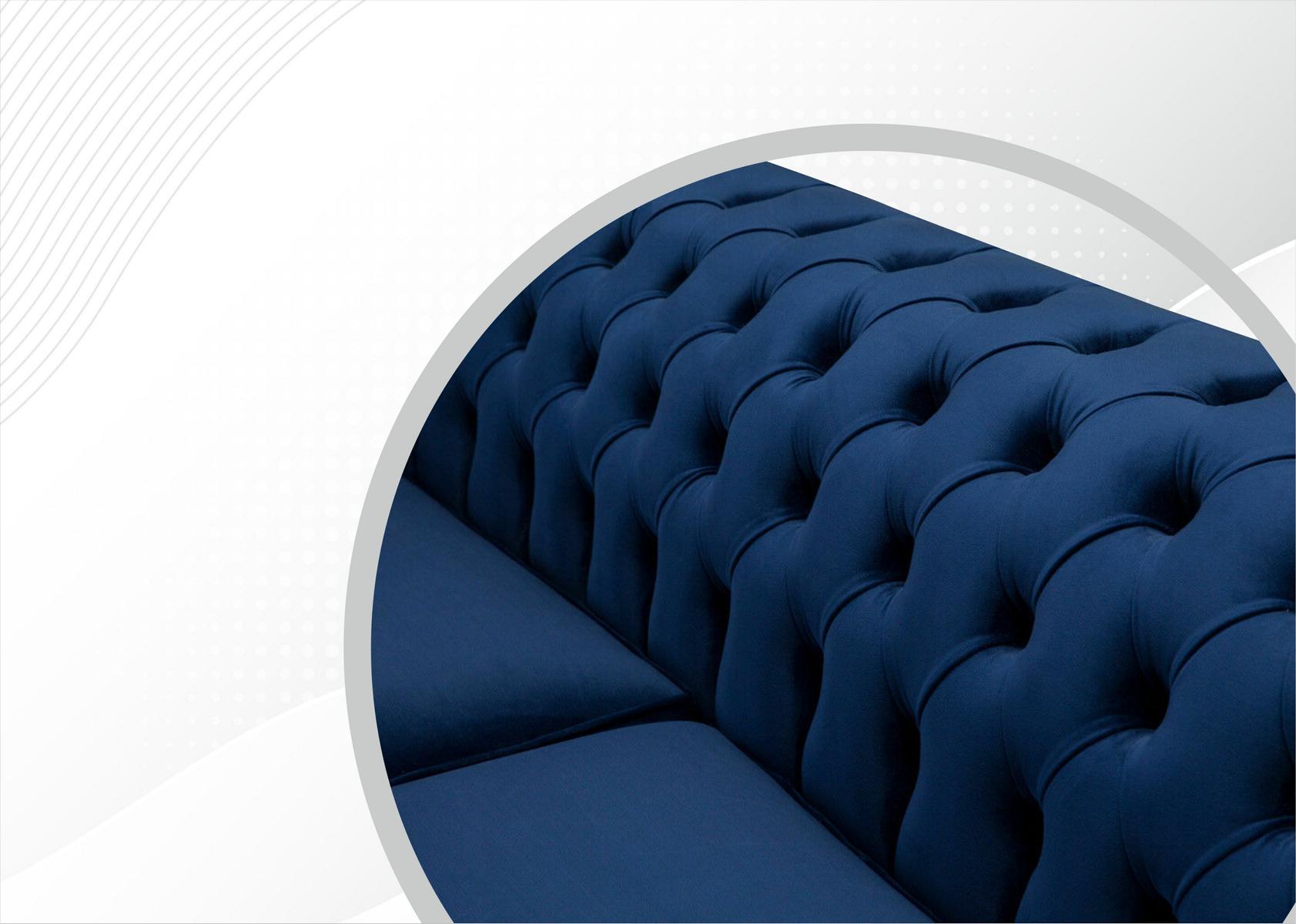 Entspannen Sie in Stil und Komfort mit unserem blauen XXL Big Sofa Couch Chesterfield! Mit einer Länge von ca. 265 cm bietet dieses elegante 4-Sitzer-Sofa viel Platz für gemütliche Abende. Die Sitztiefe von ca. 58 cm und die angenehme Sitzhöhe von ca. 44 cm laden zum Verweilen ein. Wählen Sie aus einer Vielzahl von Farben, darunter Premium Kunstleder, echtes italienisches Rindsleder oder den speziellen Magic Home Fleckenabweisenden Stoff. Optional sind auch veredelte Versionen mit Kristallsteinen oder echten Swarovski Kristallsteinen erhältlich, um Ihrem Wohnzimmer einen Hauch von Luxus zu verleihen. Das Big Sofa verfügt über ein hochwertiges Innen gestell aus echtem Holz und eine Unterfederung mit Federkern für zusätzlichen Komfort. Optional ist auch eine Bettfunktion mit Matratze erhältlich, ideal für Gästeübernachtungen. Entdecken Sie das blaue XXL Big Sofa Couch Chesterfield von XL Moebel und verwandeln Sie Ihr Wohnzimmer in einen eleganten und stilvollen Raum!