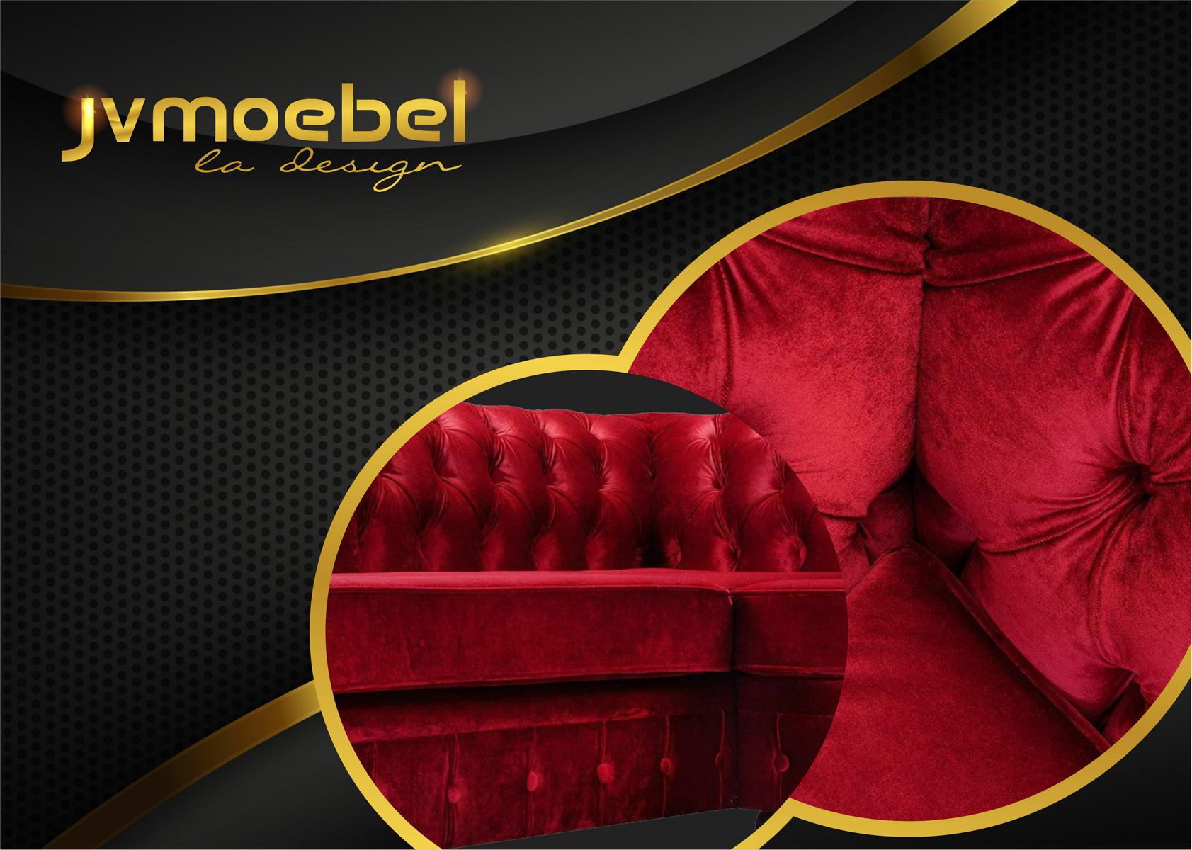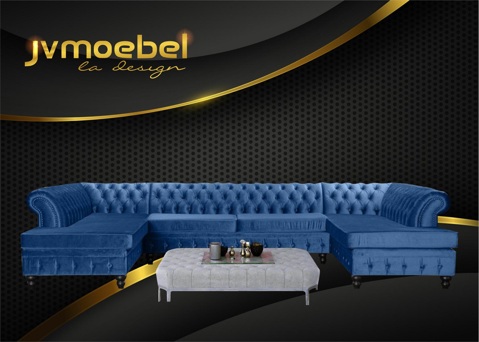 Set Luxury Modern Ecksofa U-Form Chesterfield und Couchtisch Wohnzimmer Textil