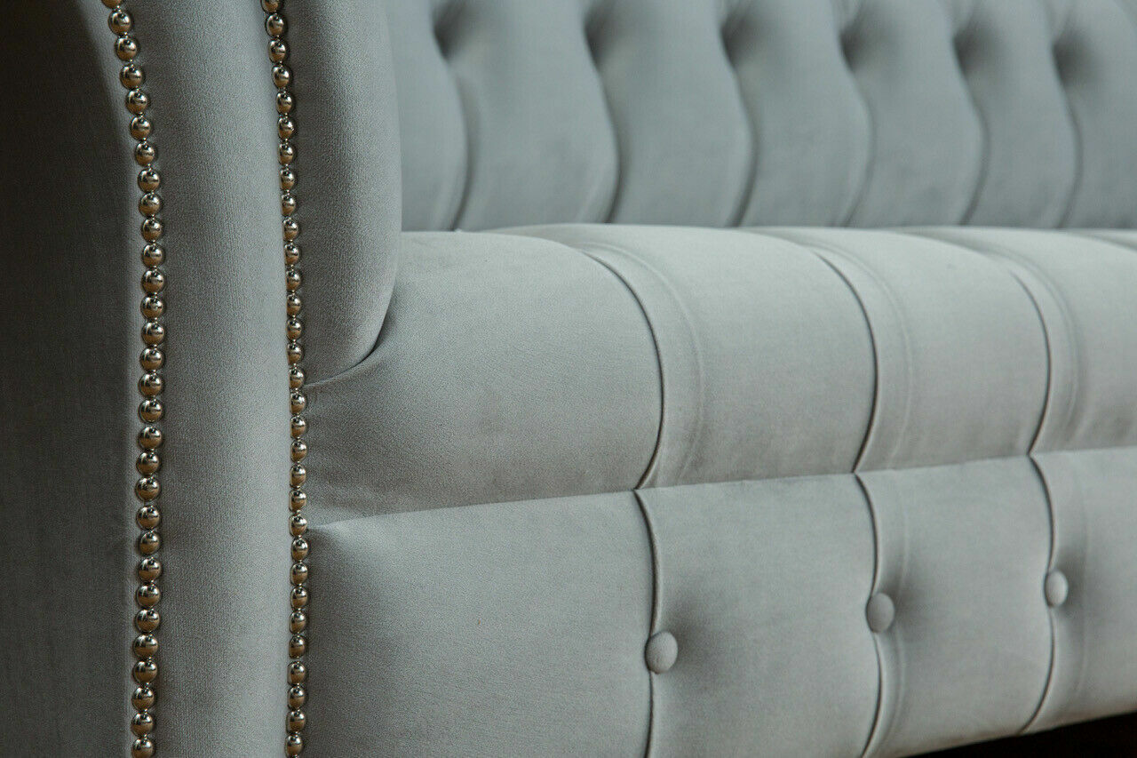 Hol dir jetzt das Textil Sofa Stoff Couch Chesterfield in XXL! Mit einer Länge von ca. 265 cm bietet dieser Viersitzer nicht nur viel Platz, sondern auch Gemütlichkeit pur. Die Sitzhöhe von ca. 42 cm und die Sitztiefe von ca. 64 cm sorgen für entspannte Stunden auf deinem neuen Lieblingssofa. Wähle aus einer Vielzahl von Farben wie Jadegrün, Himmelblau, oder Königsblau - hier ist für jeden Geschmack etwas dabei! Das Sofa ist in verschiedenen Größen erhältlich, um sich perfekt in dein Zuhause einzufügen. Du kannst zwischen Premium Kunstleder, Echtleder aus Italien oder sogar Samt Stoff wählen. Für ultimativen Komfort gibt es auch die Option Magic Home - ein fleckenabweisender Stoff, der deinen Alltag erleichtert. Hergestellt aus hochwertigem Textil, verfügt das Sofa über ein solides Innengestell aus echtem Holz und eine Unterfederung, die für Stabilität und Langlebigkeit sorgt. Der Federkern garantiert dir ein bequemes Sitzerlebnis, das zum Entspannen einlädt. Gönn dir jetzt Luxus und Komfort mit dem Textil Sofa Stoff Couch Chesterfield in XXL und mach dein Wohnzimmer zu einer Wohlfühloase!