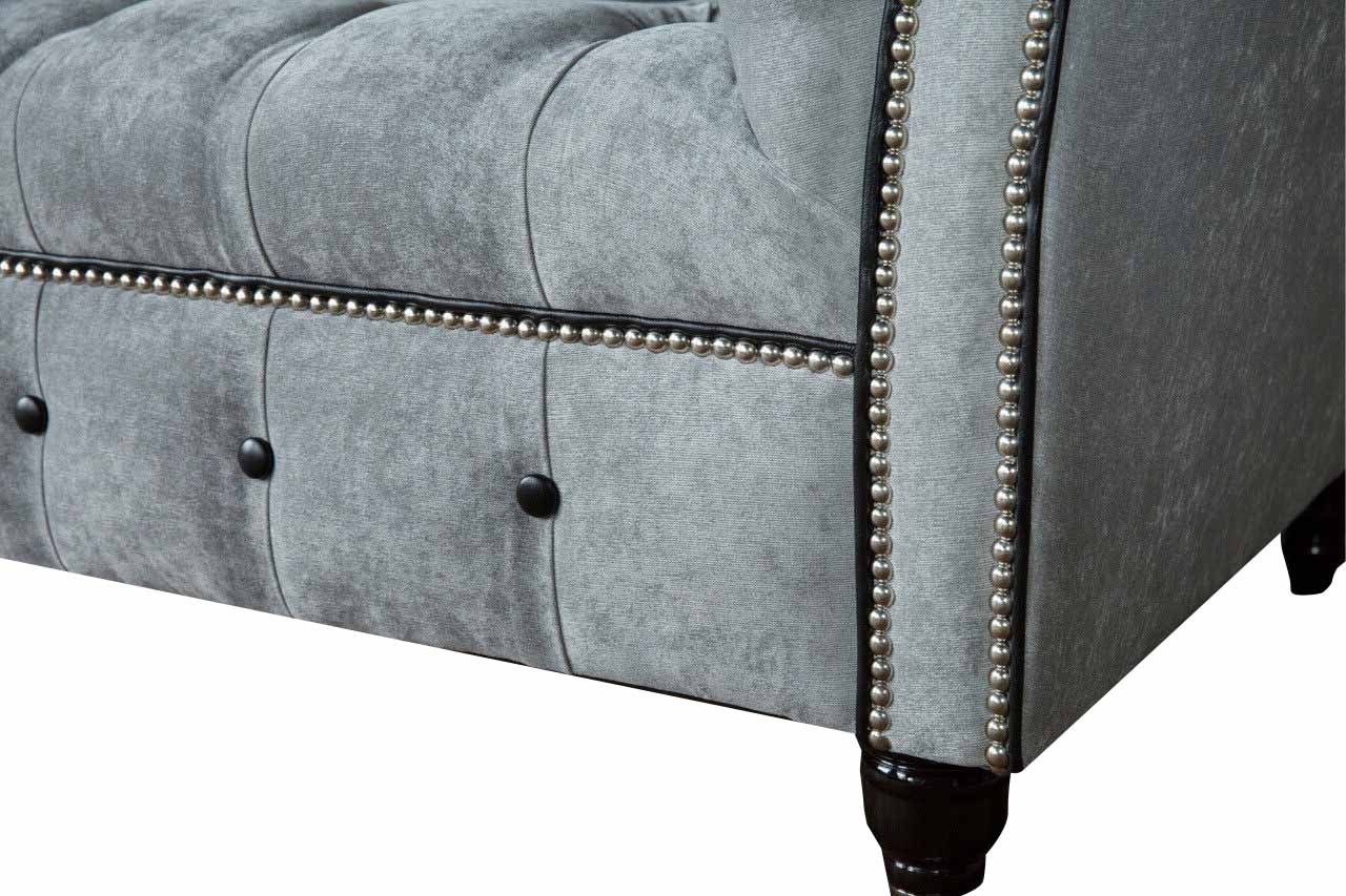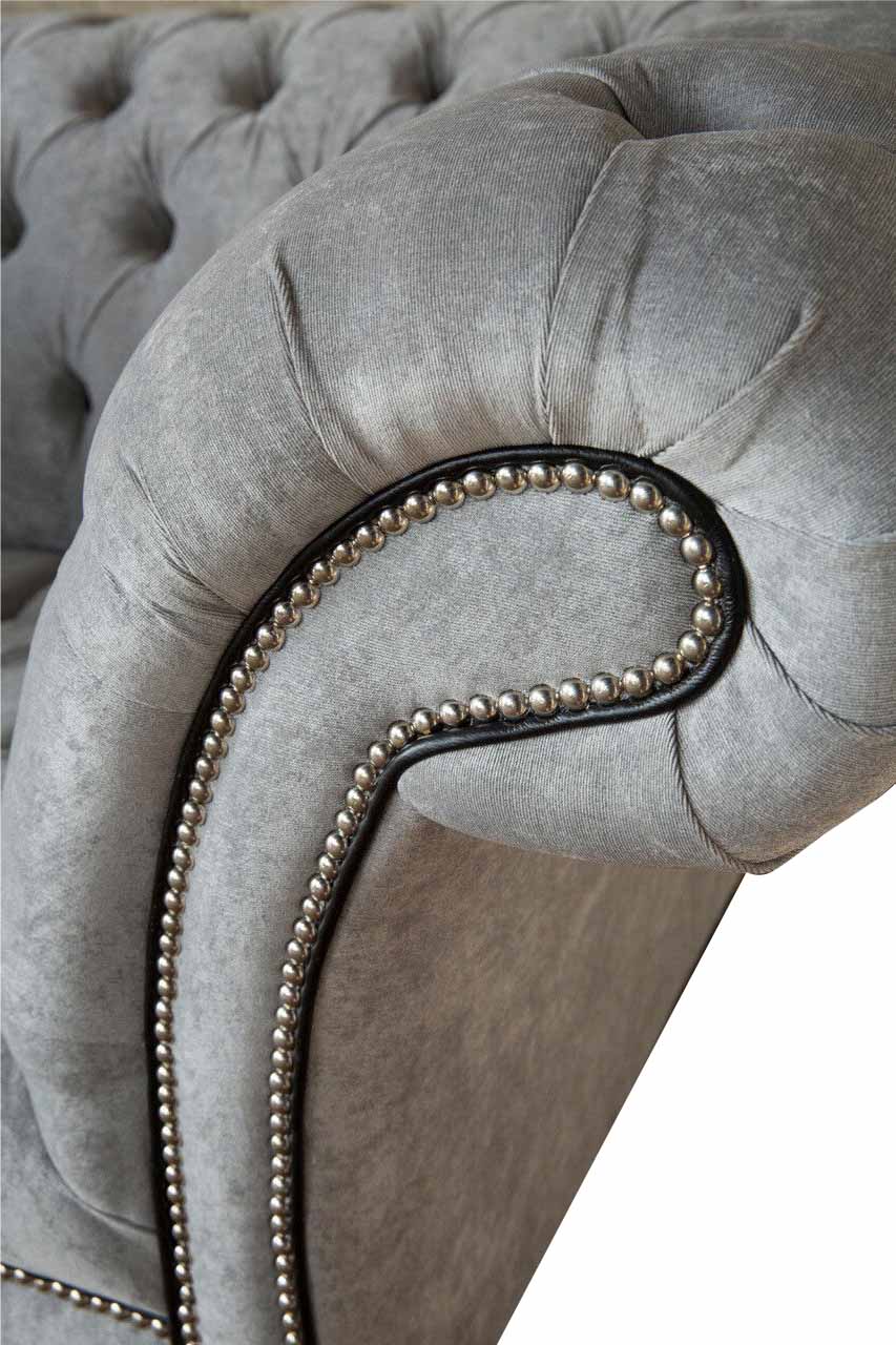 Entspannen Sie stilvoll mit unserem Chesterfield Sessel aus hochwertigem Stoff im luxuriösen Design für das Wohnzimmer. Die Maße von ca. 130 x 80 x 90 cm bieten ultimativen Komfort, während die Sitzhöhe von ca. 42 cm und die Sitztiefe von ca. 50 cm ein angenehmes Sitzerlebnis garantieren. Freuen Sie sich auf eine vielfältige Farbauswahl und die Möglichkeit, das Material nach Ihren Wünschen anzupassen. Entscheiden Sie sich zwischen Premium Kunstleder, Echtleder, Samt Stoff oder dem magischen Fleckenabweisenden Stoff "Magic Home". Das Innengestell aus echtem Holz und der Federkern sorgen für Stabilität und Langlebigkeit. Optional können Sie echte Kristallsteine oder Knöpfe auswählen, um den Sessel noch edler zu gestalten. Gönnen Sie sich den Luxus und Komfort, den Sie verdienen, mit unserem Chesterfield Sessel für Ihr Wohnzimmer. Wählen Sie aus verschiedenen Größen wie 5-Sitzer, 4-Sitzer, 3-Sitzer, 2-Sitzer oder 1-Sitzer - oder fragen Sie nach einer Sondergröße für eine individuelle Anfertigung. Lassen Sie sich von unserem Angebot überzeugen und genießen Sie entspannte Stunden in Ihrem neuen Lieblingssessel.