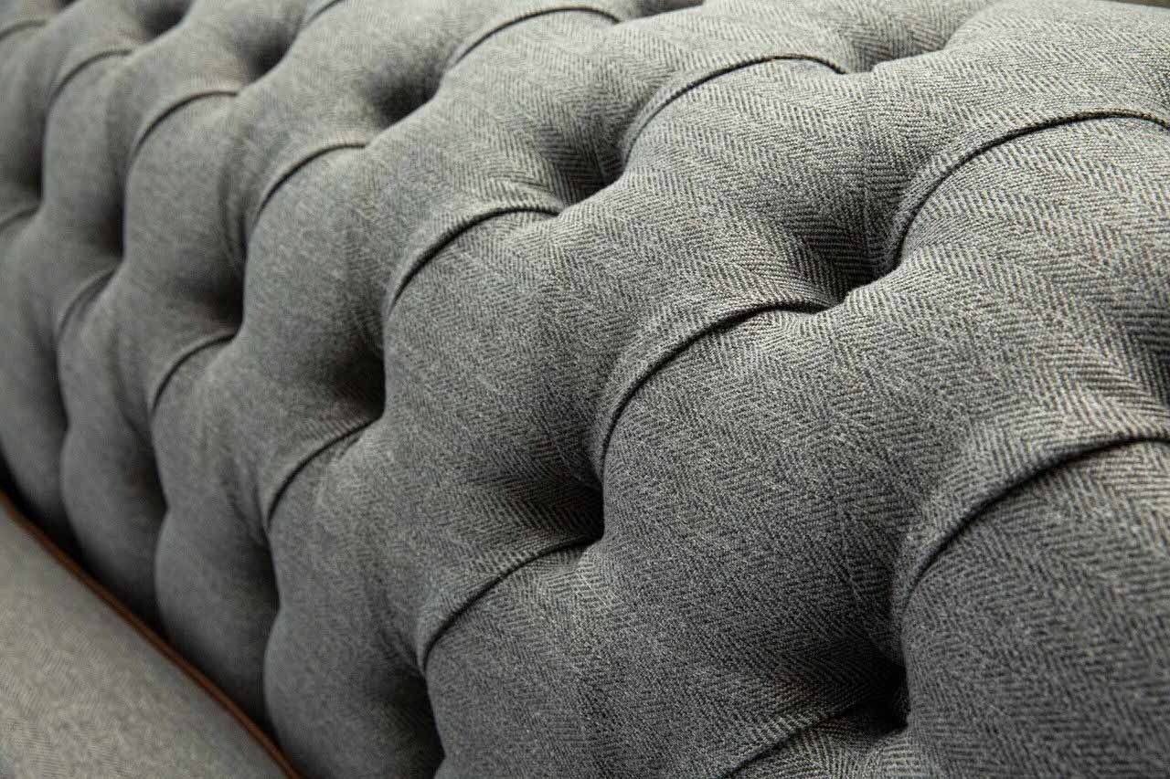 Genießen Sie stilvolle Entspannung in unserem Sessel Design Relax Textil Lounge Luxus Grau Polster Sitzer Chesterfield! Hergestellt aus hochwertigem Textil und Holz, bietet dieser Sessel Komfort und Eleganz. Mit Maßen von ca. 150 x 80 x 90 cm, einer Sitzhöhe von ca. 42 cm und einer Sitztiefe von ca. 52 cm lädt er zum Verweilen ein. Entdecken Sie die Vielfalt an Farben und Materialien, darunter Premium Kunstleder, Echtleder, Samtstoff oder sogar den fleckenabweisenden Magic Home Stoff. Optional können Sie eine Bettfunktion mit Matratze hinzufügen. Dieser Sessel kann auch in anderen Größen wie 5-Sitzer, 4-Sitzer, 3-Sitzer, 2-Sitzer oder 1-Sitzer hergestellt werden. Bei Bedarf bieten wir auch eine Sondergröße oder Maßanfertigung an. Das Innengestell aus echtem Holz und der Federkern sorgen für Langlebigkeit und Komfort. Durch die Möglichkeit, zwischen Knöpfen, Kristallsteinen oder echten Swarovski Kristallen zu wählen, können Sie den Sessel nach Ihren Wünschen personalisieren. Erleben Sie luxuriöse Entspannung mit unserem Sessel Design Relax Textil Lounge Luxus - ein exklusives Möbelstück, das Ihrem Zuhause einen Hauch von Eleganz verleiht.