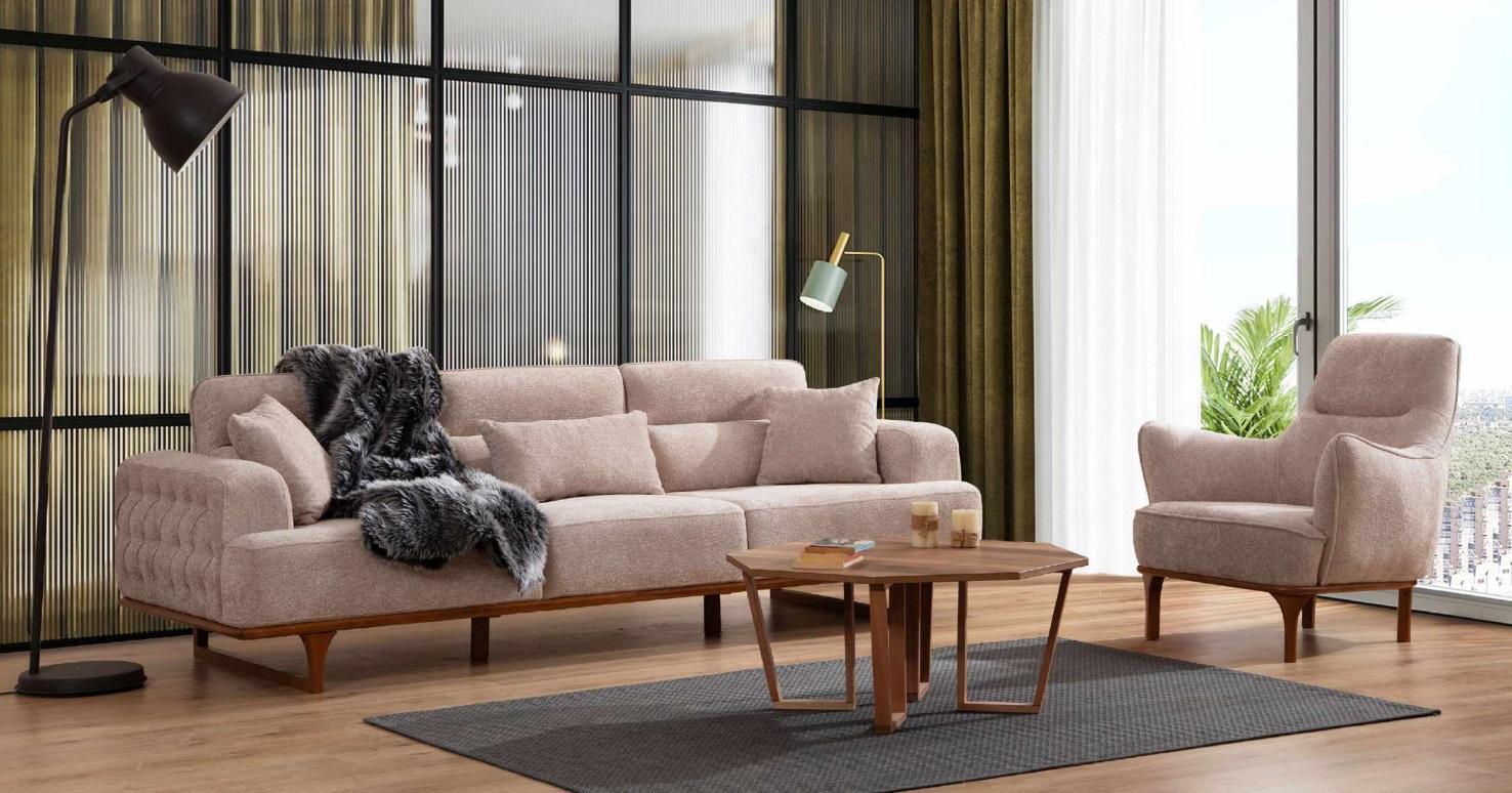Beige Sofagarnitur Dreisitzer Sessel Luxus Sessel Beige Moderne Möbel
