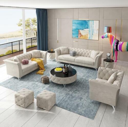 Chesterfield Set 8tlg Set Couch Polster Garnitur Beistelltisch Couchtisch Sofa