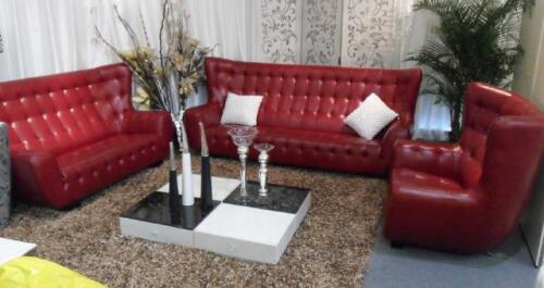 Sofagarnitur Chesterfield Sessel Sofa Set 3 tlg Ledersofa Rot Modern