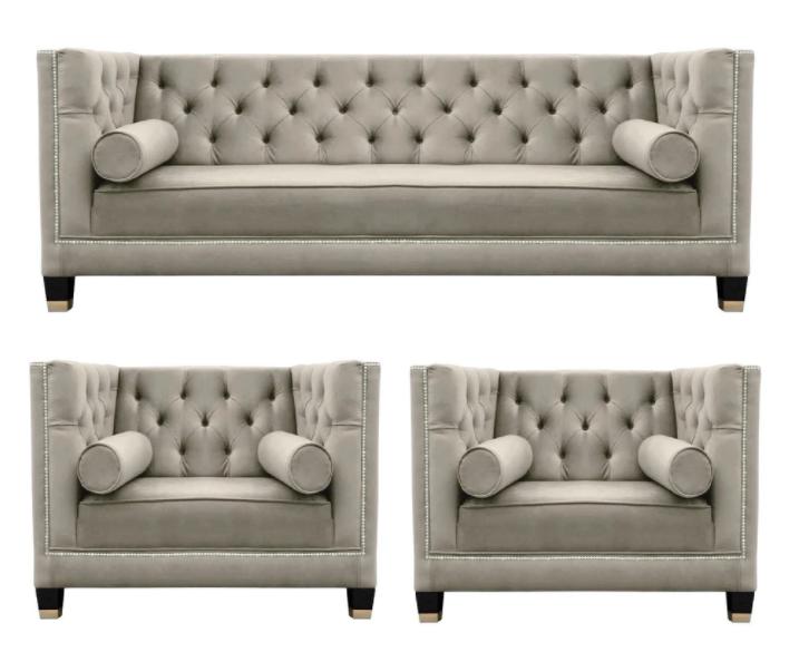 Beige Sofagarnitur Chesterfield Sessel Luxus Möbel Textil Stoff Wohnzimmer Neu