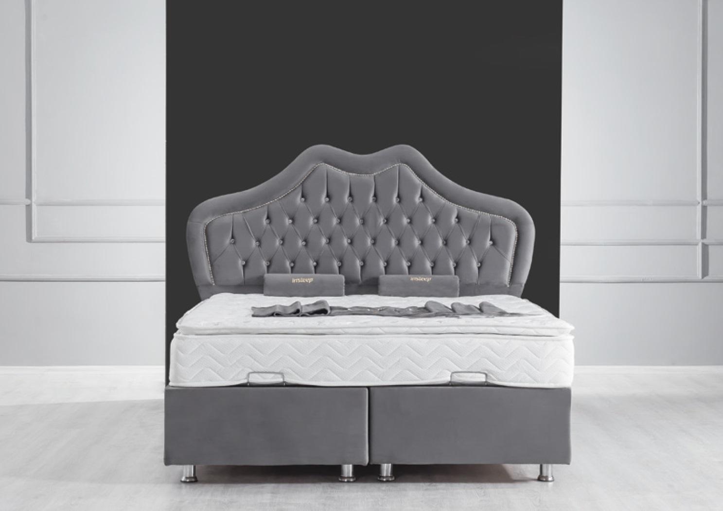 Entspannen Sie in Stil und Komfort mit unserem Bett Grau Doppelbett im luxuriösen Boxspring-Stil! Das Bett misst ca. 160 x 200 x 160 cm und verfügt über eine Liegefläche von 160 x 200 cm. Die Matratze ist inklusive für Ihre Bequemlichkeit. Hergestellt aus hochwertigem Metall und Stoff, bietet dieses Bett nicht nur Eleganz, sondern auch Langlebigkeit. Andere Größen und Kopfteilgrößen sind auf Anfrage erhältlich. Holen Sie sich noch heute Ihr Traumbett und verwandeln Sie Ihr Schlafzimmer in eine Oase der Entspannung!