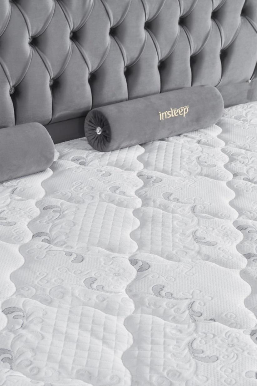 Bett Grau Doppelbett Boxspring Betten Stil Stoff Chesterfield 160x200