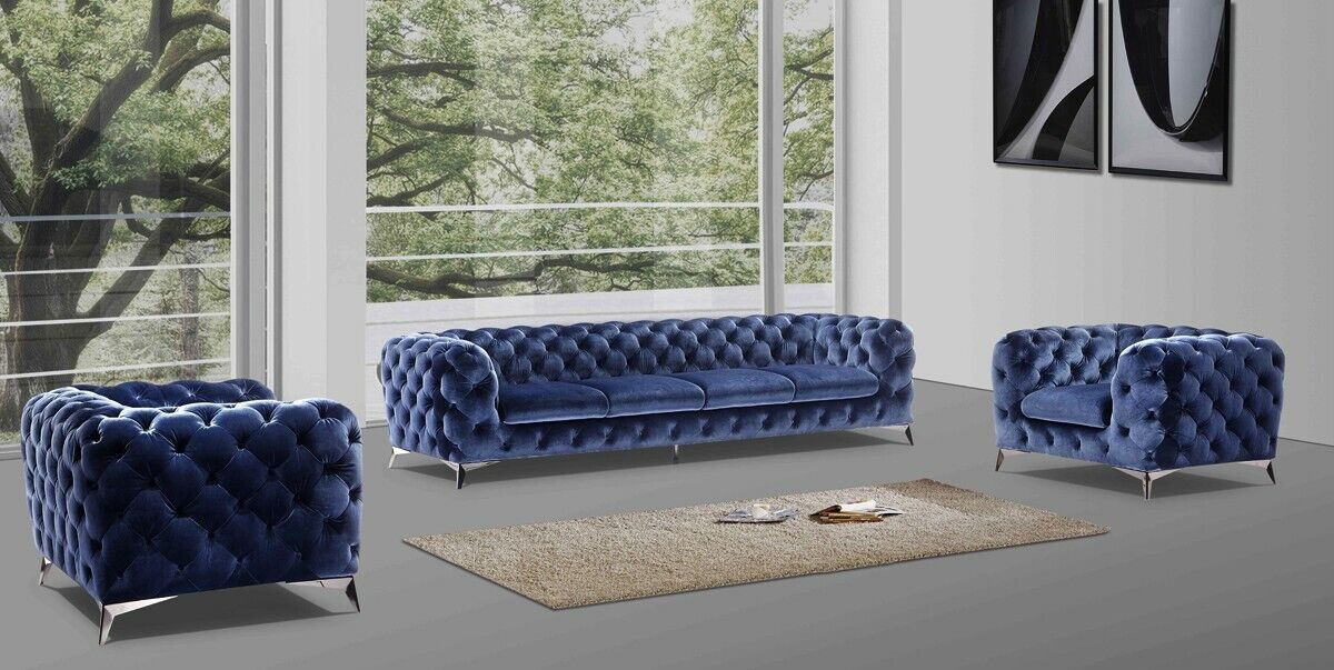Blaue Chesterfield Couch Polster Garnitur Textil 2+2 designer Möbel