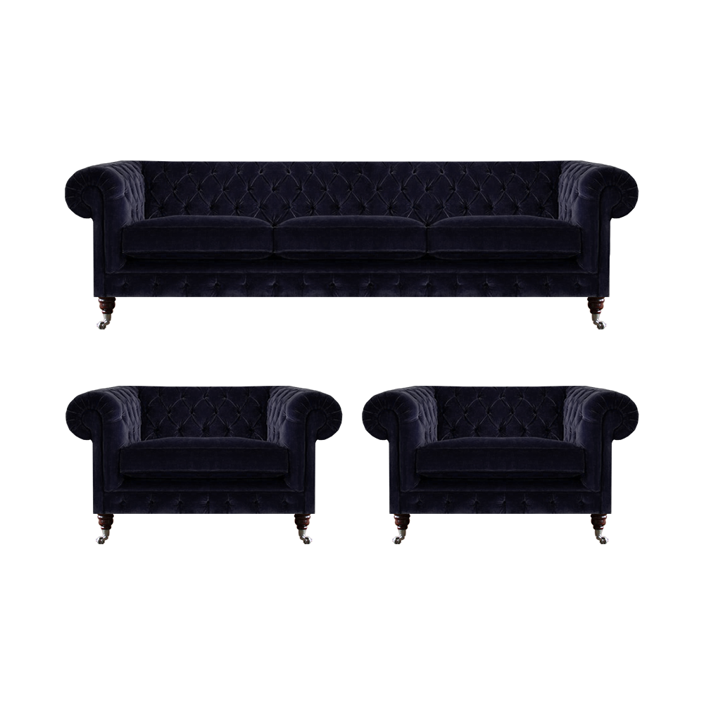 Blaue Chesterfield Couchgarnitur Designer 3-Sitzer 2x Polstersessel 3tlg