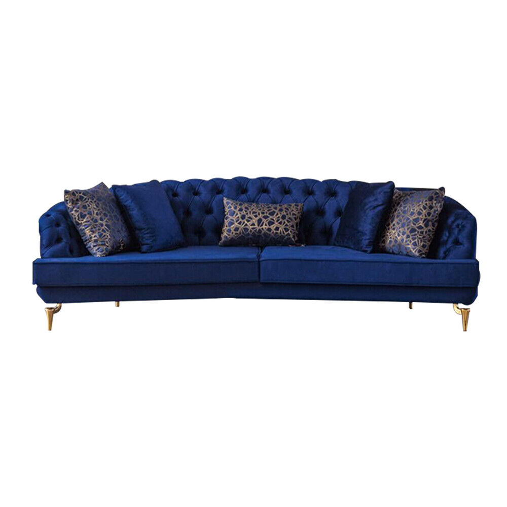 Blaue Wohnzimmer Chesterfield Sofagarnitur Luxus Polstersofas 4x Sitzer