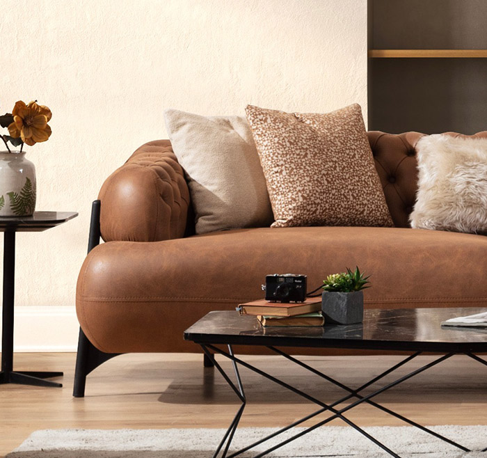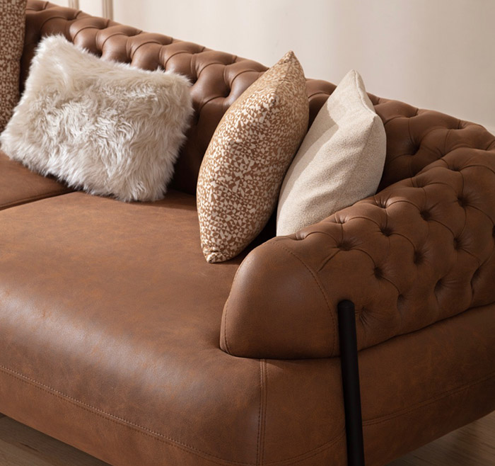 Brauner Chesterfield Dreisitzer Wohnzimmer Polstercouch Moderne Möbel