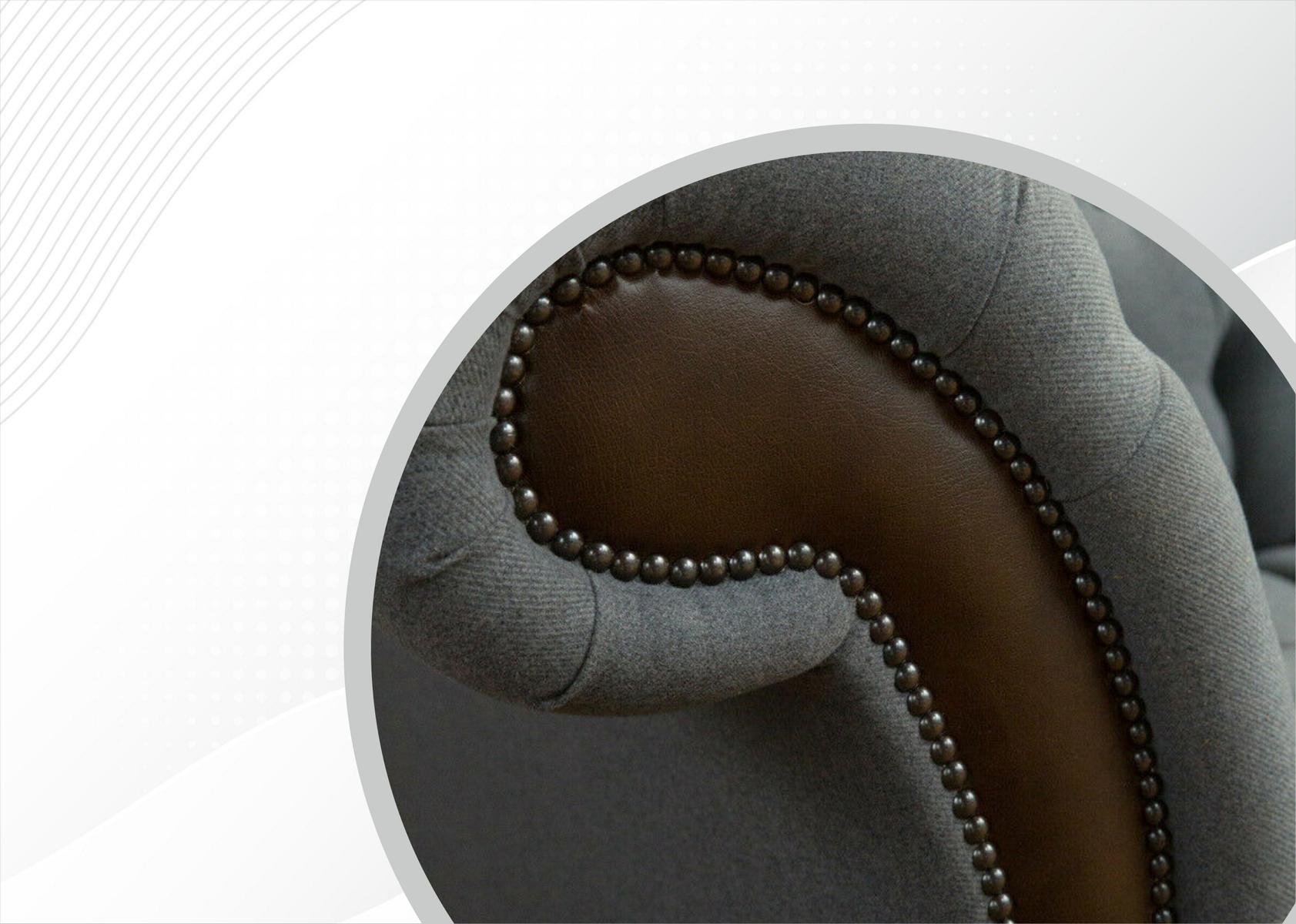 Chesterfield 4 Sitzer Grau Stoff Wohnzimmer Design Polster Sofa Big Textil Möbel