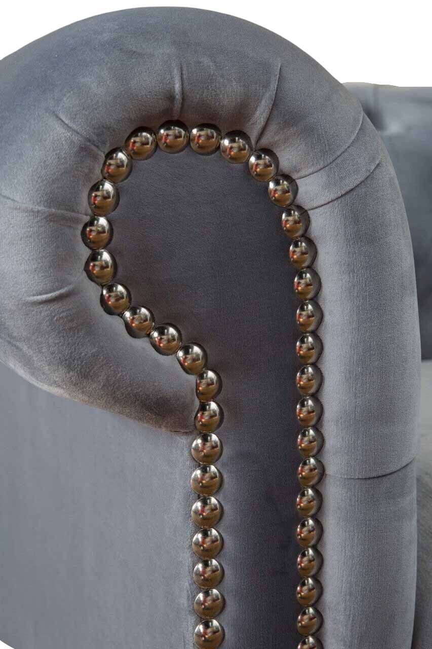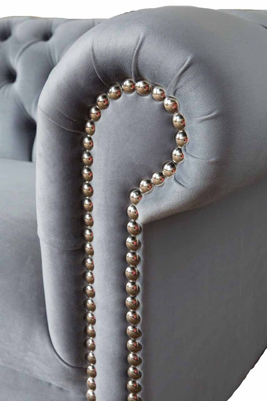 Chesterfield Grau Couch Dreisitzer Sofa Couchen Sofas Samt Möbel 230cm