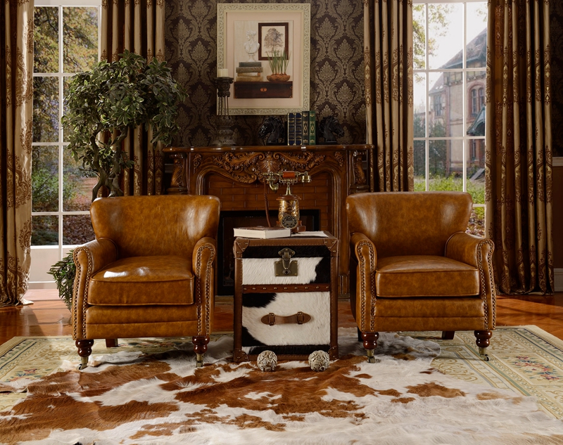 Chesterfield Ohrensessel Braun Leder, Wohnzimmer