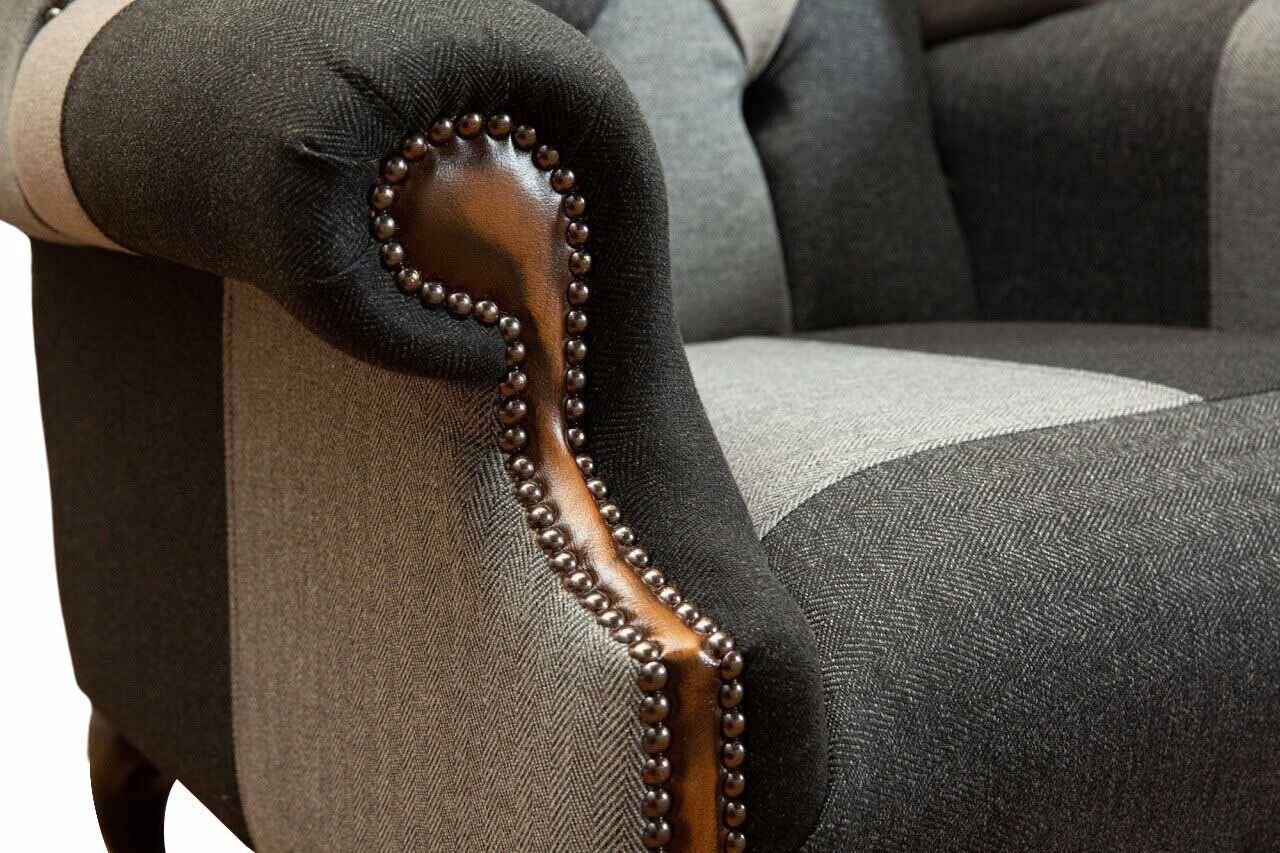 Chesterfield Ohrensessel Sessel 1 Sitzer Sofa Couch Polster Textil Neu