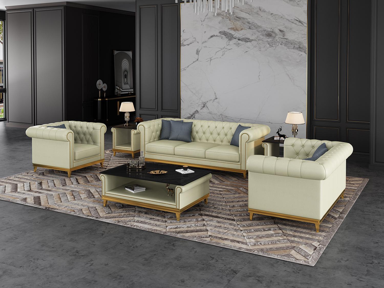 Holen Sie sich noch heute die Chesterfield Sofagarnitur Couch Polster Möbel Set 3+2+1 Ledersofa 3tlg für ultimativen Komfort und Stil in Ihr Zuhause! Dieses 3-teilige Set bietet einen 3-Sitzer, einen 2-Sitzer und einen einzelnen Sessel, alle maßgefertigt nach Ihren Wünschen. Wählen Sie aus einer Vielzahl von Farben, darunter Braun, Grün, Schwarz, Blau, Rot und Grau, sowie verschiedenen Materialoptionen wie Samt, Velours, Polyester, Kunstleder und Premium-Leder. Das Premium Lederfaserstoffmaterial sorgt für ein luxuriöses Aussehen und Gefühl, während das Innengestell aus echtem Holz für Stabilität und Langlebigkeit sorgt. Passen Sie die Sitztiefe, Länge und Breite nach Ihren Bedürfnissen an, um das Sofa Ihren persönlichen Vorlieben anzupassen. Entscheiden Sie sich für Premium Echtleder gegen einen Aufpreis für noch mehr Raffinesse. Bringen Sie mit dieser stilvollen Sofagarnitur Eleganz in Ihr Wohnzimmer und genießen Sie den Luxus von maßgefertigten Möbeln. Bestellen Sie jetzt und machen Sie Ihr Zuhause zu einem Ort des Komforts und des Luxus!