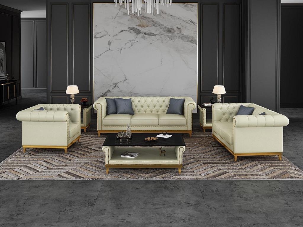 Chesterfield Sofagarnitur Couch Polster Möbel Set 3+2+1 Ledersofa 3tlg