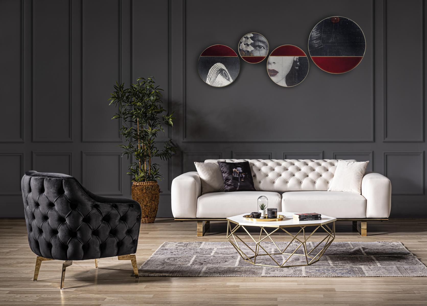 Chesterfield Sofagarnitur Sofa 31 Sitzer Sessel Stoff Luxus Weiß Sofas