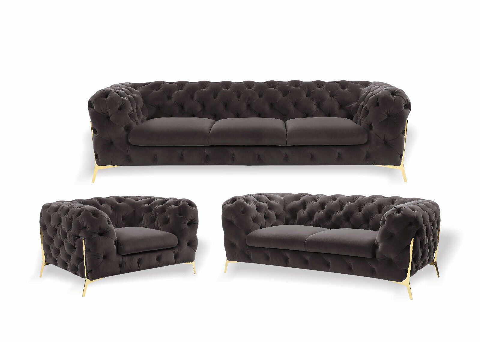 Designer Chesterfield Sofagarnitur Sofa Couch Polster Set in Samt 3+2+1 Sitzer