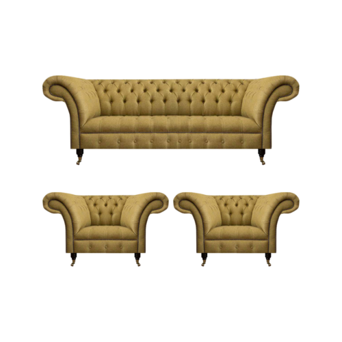 Gelb Wohnzimmer Set Komplett 2x Sessel Chesterfield Dreisitzer Sofa Couch