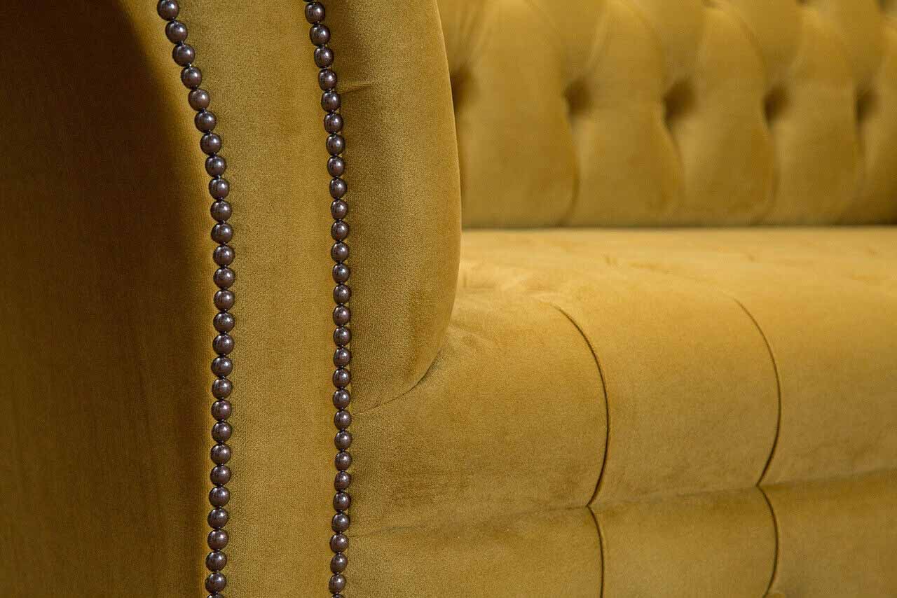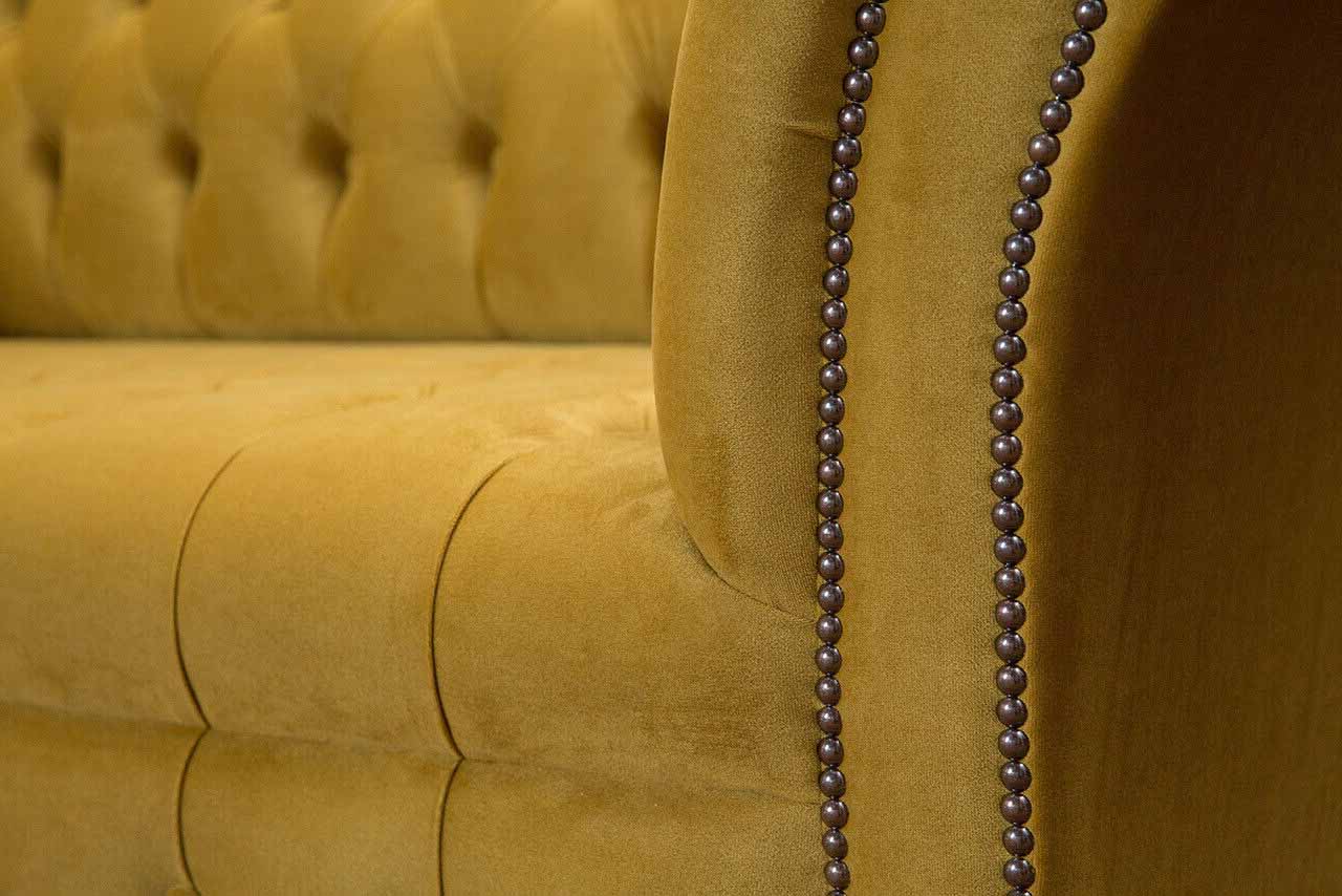 Entdecken Sie die Gelbe Chesterfield Sofagarnitur Couch Polster Set Sitzgarnitur Komplett für ein luxuriöses Wohnzimmer! Dieses einzigartige Set ist in verschiedenen Größen erhältlich, damit es perfekt in Ihren Raum passt. Passen Sie die Sitztiefe, Länge und Breite ganz nach Ihren Wünschen an. Wählen Sie aus einer Vielzahl von Farben wie Braun, Grün, Schwarz, Blau, Rot und Grau sowie verschiedenen Materialien wie Samt, Velours, Polyester, Kunstleder oder Leder. Das Angebot umfasst Premium Kunstleder/Stoff, Premium Echtleder, Premium Samt Stoff oder Magic Home (Fleckenabweisender Stoff) - für jeden Geschmack das Richtige. Optional kann das Sofa mit exklusiven Kristallsteinen versehen werden, um einen Hauch von Luxus zu schaffen. Hergestellt aus hochwertigem Material und mit einem Innengestell aus echtem Holz und Federkern, bietet diese Sofagarnitur höchsten Komfort und Langlebigkeit. Erleben Sie echte italienische Handwerkskunst mit dem Rindsleder aus Italien. Bringen Sie Stil und Eleganz in Ihr Zuhause mit der Gelbe Chesterfield Sofagarnitur Couch Polster Set Sitzgarnitur Komplett! Individuelle Maßanfertigungen sind auf Anfrage möglich. Gönnen Sie sich dieses exklusive Möbelstück und machen Sie Ihre Wohnzimmerträume wahr!