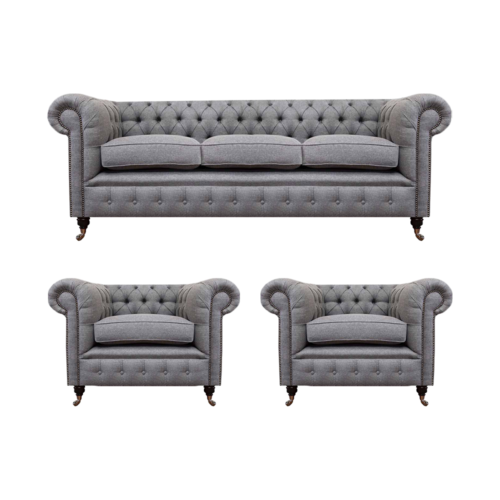 Grau Chesterfield Luxus Möbel Wohnzimmer Set 3tlg Sofas Textil Sessel