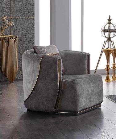 Grau Sofagarnitur 3+1 Sitzer mit Edelstahl Couch Sofa Polster Set 2tlg