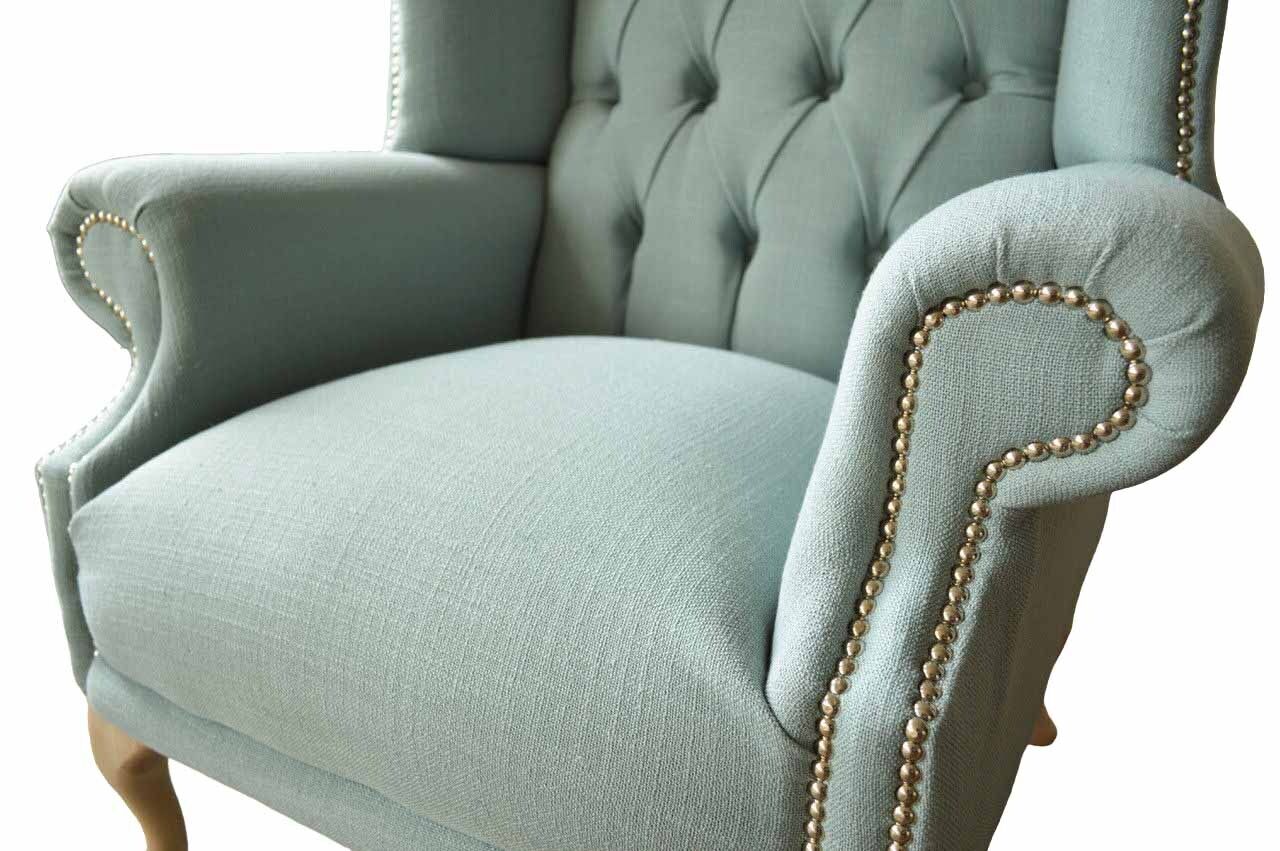 Ohrensessel Sessel Design Polster Weiß Couch Chesterfield Textil Neu