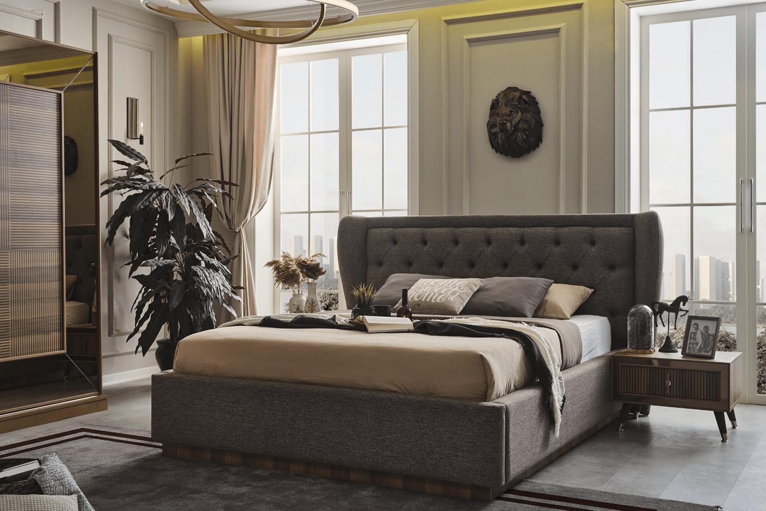 Entspannen Sie in Stil und Komfort mit unserer Schlafzimmergarnitur Polsterbett 2x Nachttische Kleiderschrank 4tlg Set! Dieses Set, bestehend aus einem gemütlichen Polsterbett, zwei Nachttischen und einem geräumigen Kleiderschrank, vereint Funktionalität und Ästhetik perfekt. Das Polsterbett beeindruckt mit den Maßen ca. 186 x 220 x 116 cm und einer Liegefläche von ca. 160 x 200 cm. Die 2x Nachttische und der Kleiderschrank sorgen für zusätzlichen Stauraum und runden das Gesamtbild harmonisch ab. Hergestellt aus Holz, Glas und Textil, besticht dieses Set nicht nur durch seine hochwertige Verarbeitung, sondern auch durch das ansprechende Design in der Farbe wie abgebildet. Verleihen Sie Ihrem Schlafzimmer mit dieser Schlafzimmergarnitur von XL Moebel einen Hauch von Luxus und genießen Sie erholsame Nächte in einer stilvollen Umgebung. Gönnen Sie sich dieses Set und machen Sie Ihr Schlafzimmer zu einem wahren Wohlfühlparadies!