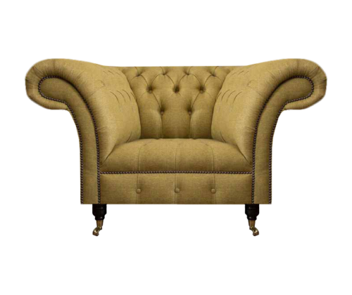 Der luxuriöse Chesterfield Sessel für das Wohnzimmer (Artikel Nr. EAN: 4067282731691) bietet mit seinen großzügigen Abmessungen von ca. 130 cm Länge, 90 cm Breite und 80 cm Höhe einen komfortablen Sitzplatz für entspannte Momente. Die Sitzhöhe beträgt ca. 42 cm und die Sitztiefe ca. 52 cm, was ein angenehmes Sitzen ermöglicht. Optional sind im Shop passende Sofas erhältlich: ein 4-Sitzer mit den Maßen ca. 275 cm x 90 cm x 80 cm, ein 3-Sitzer mit ca. 220 cm x 90 cm x 80 cm und ein 2-Sitzer mit ca. 180 cm x 90 cm x 80 cm. Für einen Aufpreis von 549 Euro kann der Sessel auch in 100% Vollleder erworben werden. Die Farbe Gelb verleiht ihm eine moderne Note, weitere Farboptionen finden Sie unter dem Reiter "Farben". Das Material des Sessels besteht aus einem robusten Holzgestell, das mit hochwertigem Textil bezogen ist. Weitere Materialmöglichkeiten umfassen Premium Kunstleder (ohne Aufpreis), Premium Echtleder (mit Aufpreis), Premium Samt Stoff (ohne Aufpreis) und Magic Home (fleckenabweisender Stoff) (mit Aufpreis). Für eine individuelle Note können statt der Standardknöpfe Kristallsteine (+199,00 EUR) oder echte Swarovski Kristallsteine (+599,00 EUR) gewählt werden. Das Innengestell des Sessels besteht aus echtem Holz und ist mit einem Federkern ausgestattet, der zusätzlichen Sitzkomfort bietet.