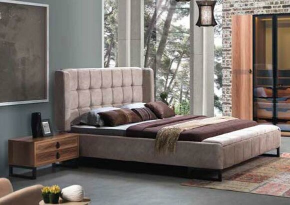 Schlafzimmer Set 5tlg. Luxus Bett 2x Nachttisch Kommode Kleiderschrank Holz Neu